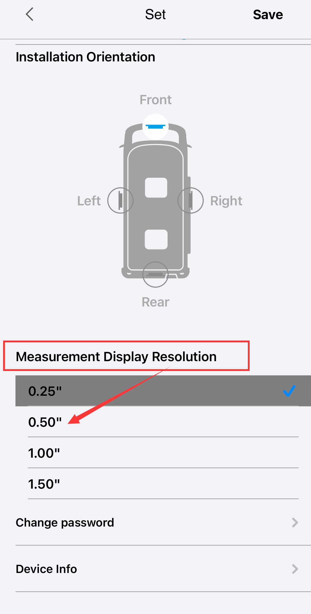 To eliminate this, we recommend you adjust the Measurement Display Resolution in the app. By setting it to 0.50'', the small fluctuations will be filtered out, and the display will remain stable.